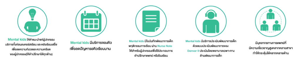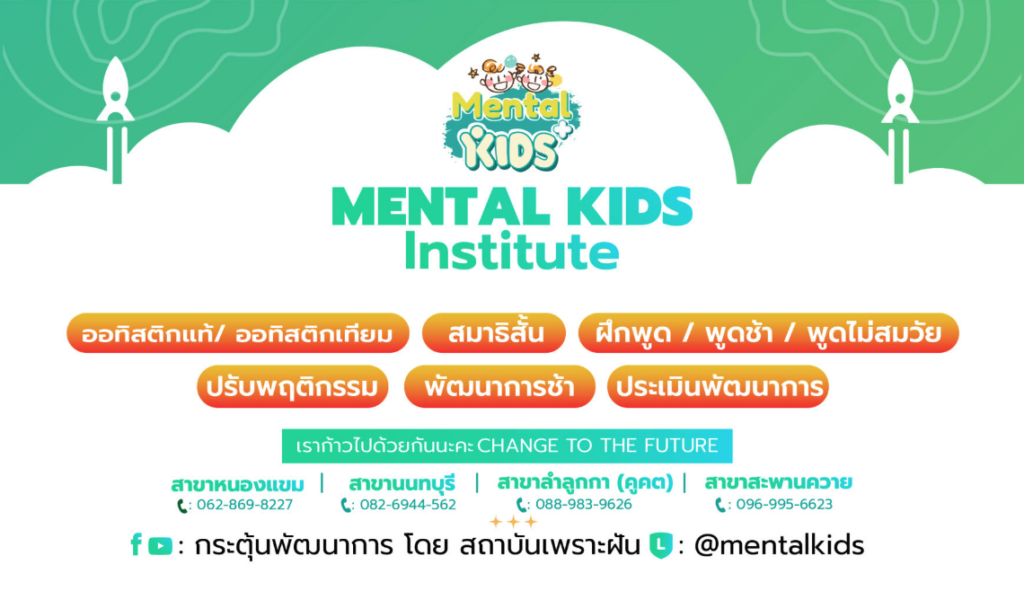 สถาบันของเราเป็นสถาบันที่มีความเชี่ยวชาญทางด้านการกระตุ้นพัฒนาการเด็ก โดยมีบุคลากรทางการแพทย์หลากหลายสาขารวมไว้ที่นี่ ได้แก่ อาจารย์ระดับมหาวิทยาลัย พยาบาลวิชาชีพ (ปริญญาโทพัฒนาการเด็ก) นักจิตวิทยา ครูการศึกษาพิเศษ และนักวิทยาศาสตร์ ซึ่งเป็นบุคลากรชั้นนำของประเทศ ดังนั้นแสดงให้เห็นผลลัพธ์ที่ชัดเจน ถึงการเปลี่ยนแปลงอย่างรวดเร็ว…ทางสถาบันมีความถนัดในการกระตุ้นพัฒนาการเด็ก-บำบัดแบบองค์รวม (กาย จิต สังคม และปัญญา) ในกลุ่มสมาธิสั้น พัฒนาการล่าช้า (ภาษาล่าช้า) ออทิสติก การเรียนรู้บกพร่อง พฤติกรรมก้าวร้าว และให้คำปรึกษาแก่ครอบครัว เพื่อให้เกิดความเฉพาะเจาะจงกับการส่งเสริมการเรียนรู้ มีพัฒนาการเหมาะสมตามช่วงวัย ความรู้ด้านวิชาการครบวงจร และหลักสูตรที่ออกแบบด้วยโปรแกรมเฉพาะของสถาบัน MENTAL KIDS โดยใช้เกณฑ์การประเมินก่อนเรียนตามแบบประเมินของ Denver II เพื่อให้เหมาะสมกับเด็กตามช่วงวัย นอกจากนี้เอกลักษณ์ที่มีเฉพาะตัวของเรา ความใส่ใจในการกระตุ้นพัฒนาการ จดบันทึกพฤติกรรมของเด็กผ่าน nurse note โดยพยาบาลพัฒนาการเด็ก เพื่อให้ผู้ปกครองได้นำไปให้ที่โรงเรียน หรือ โรงพยาบาล ทุกครั้งที่ไปพบแพทย์